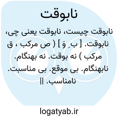 نابوقت. [ ب ِ وَ ] ( ص مرکب، ق مرکب ) نه بوقت. نه بهنگام. نابهنگام. بی موقع. بی مناسبت. نامناسب. || بیجا. نه بجای خود. بیمورد. نابجا.