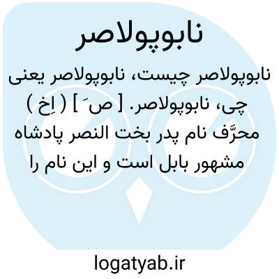 نابوپولاصر. [ ص َ ] ( اِخ ) محرَّف نام پدر بخت النصر پادشاه مشهور بابل است و این نام را اروپائی ها به وی داده اند. از 622 تا 605 ق. م. بمدت 17 سال حکومت کرد. ( از قاموس الاعلام ج 6 ).