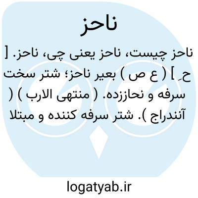 ناحز. [ ح ِ ] ( ع ص ) بعیر ناحز؛ شتر سخت سرفه و نحاززده. ( منتهی الارب ) ( آنندراج ). شتر سرفه کننده و مبتلا به بیماری نحاز. ( ناظم الاطباء ). شتر سرفه دار. ( شمس اللغات ). نحزالبعیر؛ اصابه داء النحاز، فهو ناحز. ( المنجد ). || ( مص ) برخورد کردن سپل پنجم شترمرغ آرنج آن را. ( ناظم الاطباء ). درخوردن سپل پنجم شتر آرنج آن را. ( منتهی الارب ) ( آنندراج ).