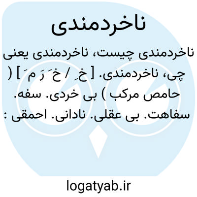 لغت نامه دهخدا ناخردمندی. [ خ ِ / خ َ رَ م َ ] ( حامص مرکب ) بی خردی. سفه. سفاهت. بی عقلی. نادانی. احمقی: همه چیزها را پسندد خردمگر ناخردمندی و خوی بد.ابوشکور.