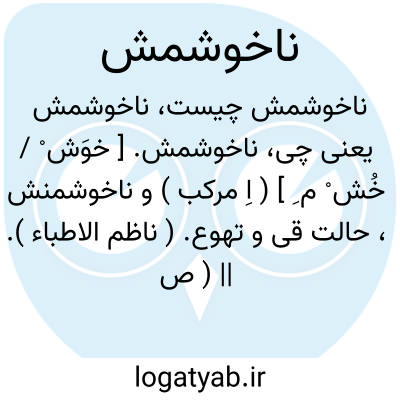 ناخوشمش. [ خوَش ْ / خُش ْ م ِ ] ( اِ مرکب ) و ناخوشمنش، حالت قی و تهوع. ( ناظم الاطباء ). || ( ص مرکب ) تهوع دارنده و ناگوار. ( ناظم الاطباء ) ( استینگاس ).
