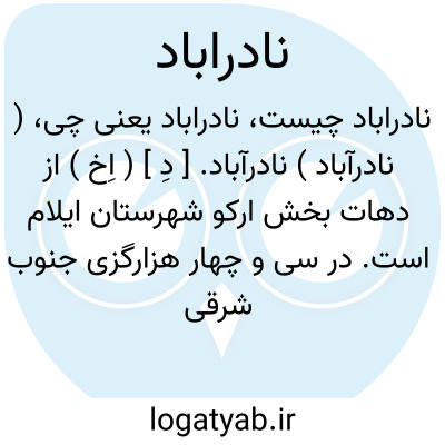 ( نادرآباد ) نادرآباد. [ دِ ] ( اِخ ) از دهات بخش ارکو شهرستان ایلام است. در سی و چهار هزارگزی جنوب شرقی قلعه دره و در کناره راه مالرو زرین آباد قرار دارد. کوهستانی است و هوائی معتدل دارد. سکنه اش 182 نفر است و فارسی را به لهجه های کردی و لری تکلم میکنند و زمستان را به گرمسیر میروند. آبش ازچشمه و محصولش غلات و لبنیات و پیشه مردمش زراعت و گله داری است. ( از فرهنگ جغرافیایی ایران ج 5 ص 450 ).