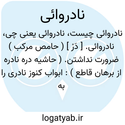 لغت نامه دهخدا نادروائی. [ دَرْ ] ( حامص مرکب ) ضرورت نداشتن. ( حاشیه دره نادره از برهان قاطع ): ابواب کنوز نادری را به دست بی پروائی و نادروائی گشوده از نادانی بادانی و اقاصی... در صدد تبذیر و اسراف برآمد. ( دره نادره چ جعفر شهیدی ص 704 ).
