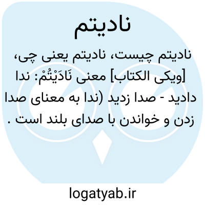 [ویکی الکتاب] معنی نَادَیْتُمْ: ندا دادید - صدا زدید (ندا به معنای صدا زدن و خواندن با صدای بلند است. منظور از ندا دادن برای نماز در عبارت "وَإِذَا نَادَیْتُمْ إِلَی ﭐلصَّلَوٰةِ "، اذان گفتن است )