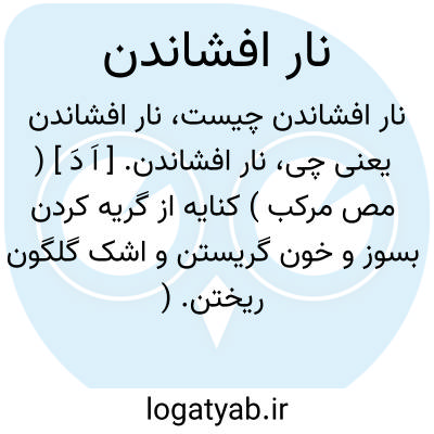 نار افشاندن. [ اَ دَ ] ( مص مرکب ) کنایه از گریه کردن بسوز و خون گریستن و اشک گلگون ریختن. ( برهان قاطع ) ( ناظم الاطباء ). کنایه از گریه کردن و اشک سرخ ریختن و خون گریستن. ( آنندراج ). خون گریستن. ( از شمس اللغات ). ناروان افشاندن. ناروان باریدن. ( آنندراج ).