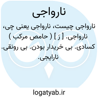 نارواجی. [ رَ ] ( حامص مرکب ) کسادی. بی خریدار بودن. بی رونقی. نارایجی.