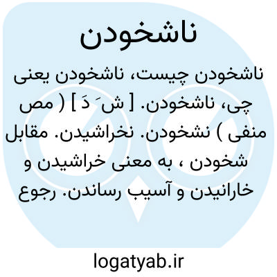 لغت نامه دهخدا ناشخودن. [ ش َ دَ ] ( مص منفی ) نشخودن. نخراشیدن. مقابل شخودن، به معنی خراشیدن و خارانیدن و آسیب رساندن. رجوع به شخودن شود.