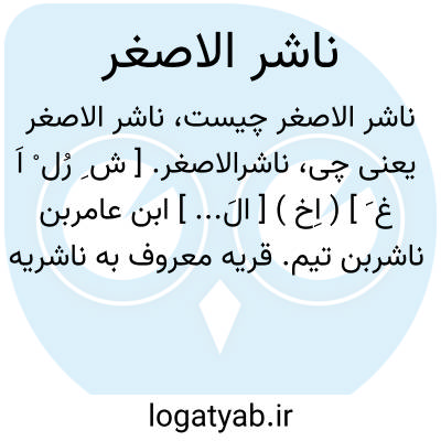 ناشرالاصغر. [ ش ِ رُل ْ اَ غ َ ] ( اِخ ) [ الَ... ] ابن عامربن ناشربن تیم. قریه معروف به ناشریه بدو منسوب است. وی این قریه رادر قسمت سفلای وادی «مور[ » در یمن ] در اوایل قرن پنجم هجری بنا نهاد. ( از الاعلام زرکلی چ 2 ج 8 ص 307 ).