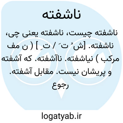 لغت نامه دهخدا ناشفته. [ش ُ ت َ / ت ِ ] ( ن مف مرکب ) نیاشفته. ناآشفته. که آشفته و پریشان نیست. مقابل آشفته. رجوع به آشفته شود.