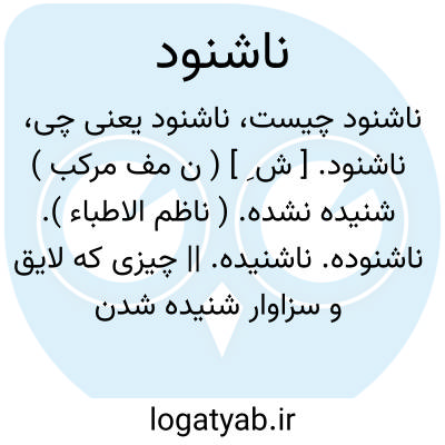 ناشنود. [ ش ِ ] ( ن مف مرکب ) شنیده نشده. ( ناظم الاطباء ). ناشنوده. ناشنیده. || چیزی که لایق و سزاوار شنیده شدن نباشد. ( ناظم الاطباء ). || سخن بیهوده. ( ناظم الاطباء ).