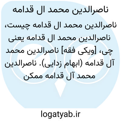 [ویکی فقه] ناصرالدین محمد آل قدامه (ابهام زدایی). ناصرالدین محمد آل قدامه ممکن است اشاره به اشخاص و شخصیت های ذیل باشد: • ناصرالدین ابوالبقاء محمد بن ابی بکر آل قدامه، ناصرالدّین ابوالبقاء محمد بن ابی بکر، از شخصیت های آلِ قُدامه• ناصرالدین ابوعبدالله محمد بن داوود آل قدامه، ناصرالدّین ابوعبدالله محمد بن داوود، از شخصیت های آلِ قُدامه• ناصرالدین محمد بن عبدالرحمن آل قدامه، ناصرالدّین محمد بن عبدالرحمن بن محمد، از شخصیت های آلِ قُدامه