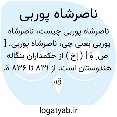 ناصرشاه پوربی. [ ص ِ هَِ ] ( اِخ ) از حکمداران بنگاله هندوستان است. از 831 تا 836 هَ. ق. فرمانروائی کرد. ( از قاموس الاعلام ج 1 ).