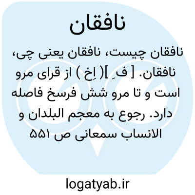 نافقان. [ ف ِ ]( اِخ ) از قرای مرو است و تا مرو شش فرسخ فاصله دارد. رجوع به معجم البلدان و الانساب سمعانی ص 551 شود.