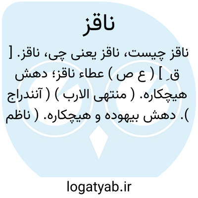لغت نامه دهخدا ناقز. [ ق ِ ] ( ع ص ) عطاء ناقز؛ دهش هیچکاره. ( منتهی الارب ) ( آنندراج ). دهش بیهوده و هیچکاره. ( ناظم الاطباء ). الناقز من العطاء؛ الخسیس و هو ذوناقز. ( معجم متن اللغة ) ( از اقرب الموارد ). عطاء ناقز و ذوناقز؛ خسیس. ( المنجد ).