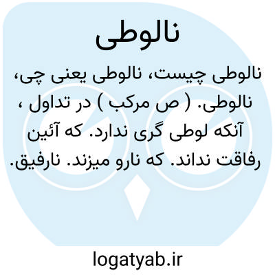 لغت نامه دهخدا نالوطی. ( ص مرکب ) در تداول، آنکه لوطی گری ندارد. که آئین رفاقت نداند. که نارو میزند. نارفیق. نادرویش. ناجوانمرد.