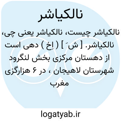 نالکیاشر. [ ش َ ] ( اِخ ) دهی است از دهستان مرکزی بخش لنگرود شهرستان لاهیجان، در 6 هزارگزی مغرب لنگرود و 5 هزارگزی شمال جاده شوسه لنگرود به لاهیجان. در جلگه معتدل و مرطوب مالاریاخیزی واقع است و 1416 تن سکنه گیلکی زبان دارد. آبش بوسیله استخر تأمین میشود. محصولش برنج و ابریشم و چای و کنف است. اهالی به زراعت اشتغال دارند. راه مالرو دارد. ( از فرهنگ جغرافیایی ایران ج 2 ).