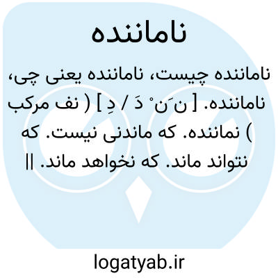 ناماننده. [ ن َن ْ دَ / دِ ] ( نف مرکب ) نماننده. که ماندنی نیست. که نتواند ماند. که نخواهد ماند. || نامانند. ضد. نقیض. غیرشبیه. ناهمانند.