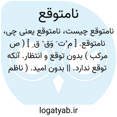 نامتوقع. [ م ُت َ وَق ْ ق ِ ] ( ص مرکب ) بدون توقع و انتظار. آنکه توقع ندارد. || بدون امید. ( ناظم الاطباء ).