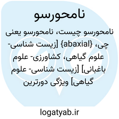 {abaxial} [زیست شناسی- علوم گیاهی، کشاورزی- علوم باغبانی] [زیست شناسی- علوم گیاهی] ویژگی دورترین سطح نسبت به محور یا ویژگی سطح پایین تر یا خارجی تر هر اندام نسبت به محور متـ. پشتی dorsal [کشاورزی- علوم باغبانی] ویژگی اندامی در گیاه که پشت به محور یا خط مرکزی...