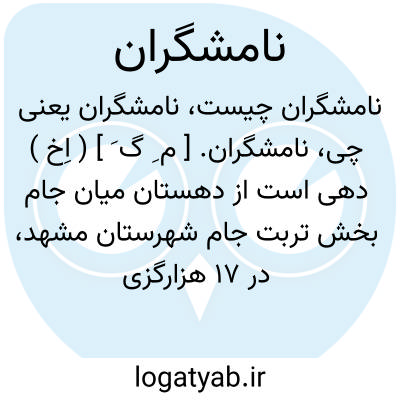 نامشگران. [ م ِ گ َ ] ( اِخ ) دهی است از دهستان میان جام بخش تربت جام شهرستان مشهد، در 17 هزارگزی جنوب غربی تربت جام و 3 هزارگزی جنوب راه مالرو عمومی تربت جام به بیزک. در منطقه کوهستانی معتدل هوائی واقع است و 2068 تن سکنه دارد. آبش از قنات و محصولش غلات است. شغل اهالی زراعت و مالداری و صنعت دستی آنجا قالیچه بافی است.راه مالرو دارد. ( از فرهنگ جغرافیایی ایران ج 9 ).