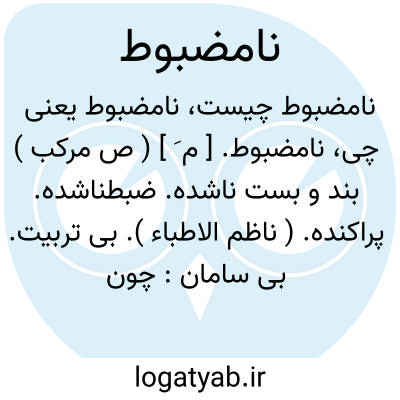 ۱ - ضبط نشده پریشانپراکنده. ۲ - بی ترتیب بی سامان بی ربط: [ چون این حرکات نامضبوط واین هذیانات نامربوط ازوی ظاهرگشت گمان بردم که جنون بردل وی مستولی شده است ]