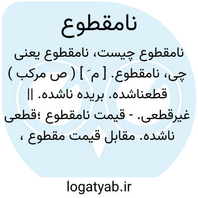 لغت نامه دهخدا نامقطوع. [ م َ ] ( ص مرکب ) قطعناشده. بریده ناشده. || غیرقطعی.- قیمت نامقطوع؛قطعی ناشده. مقابل قیمت مقطوع، به معنی قطعی و غیرقابل کاهش و چانه ناپذیر.