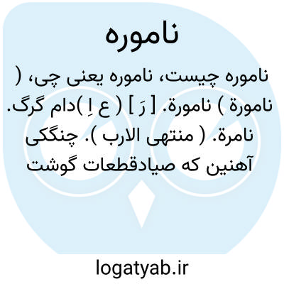 ( نامورة ) نامورة. [ رَ ] ( ع اِ )دام گرگ. نامرة. ( منتهی الارب ). چنگکی آهنین که صیادقطعات گوشت بدان آویزد شکار گرگ را. ( از المنجد ).