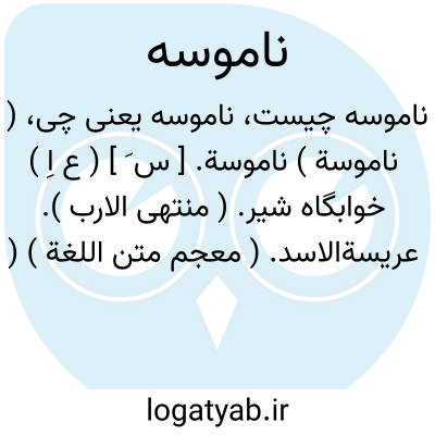 ( ناموسة ) ناموسة. [ س َ ] ( ع اِ ) خوابگاه شیر. ( منتهی الارب ). عریسةالاسد. ( معجم متن اللغة ) ( اقرب الموارد ).