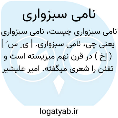 نامی سبزواری. [ ی ِ س َ ] ( اِخ ) در قرن نهم میزیسته است و تفنن را شعری میگفته. امیر علیشیر نوائی وی را چنین توصیف کرده است: در صنعت خط و انشا بی مثل و نظیر است و جوانی صافی دل و روشن ضمیر ولیکن بسی خودپسند است و به قید خودپسندی دربند. او راست: