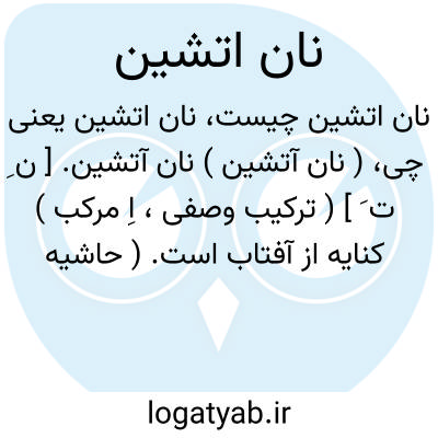 ( نان آتشین ) نان آتشین. [ ن ِ ت َ ] ( ترکیب وصفی، اِ مرکب ) کنایه از آفتاب است. ( حاشیه برهان قاطع چ معین ). نان آتش روی. نان زرین. نان گرم چرخ. آفتاب.