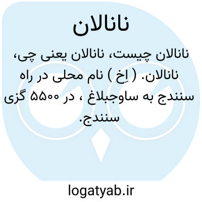 نانالان. ( اِخ ) نام محلی در راه سنندج به ساوجبلاغ، در 5500 گزی سنندج.