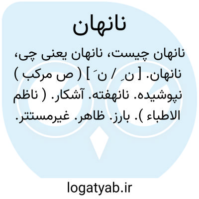 نانهان. [ ن ِ / ن َ ] ( ص مرکب ) نپوشیده. نانهفته. آشکار. ( ناظم الاطباء ). بارز. ظاهر. غیرمستتر. هویدا. پدید. پدیدار. که نهفته و پنهان و مستور نیست: