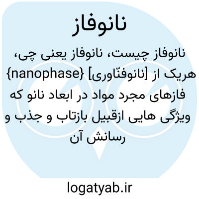 {nanophase} [نانوفنّاوری] هریک از فازهای مجرد مواد در ابعاد نانو که ویژگی هایی ازقبیل بازتاب و جذب و رسانش آن تابعی از ویژگی های ابعاد فضایی همان فاز است