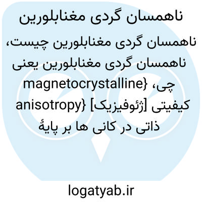 {magnetocrystalline anisotropy} [ژئوفیزیک] کیفیتی ذاتی در کانی ها بر پایۀ مقدار انرژی ای که هر اتم برای حرکت دادن مغناطش بلور از یک جهت بلورشناختی به جهت دیگر نیاز دارد