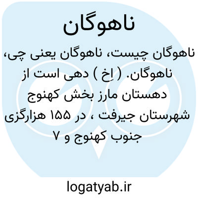 ناهوگان. ( اِخ ) دهی است از دهستان مارز بخش کهنوج شهرستان جیرفت، در 155 هزارگزی جنوب کهنوج و 7 هزارگزی مغرب راه انگهران به کهنوج. ناحیه کوهستانی گرمسیری واقع است و 50 تن سکنه دارد. آبش ازرودخانه و محصولش غلات و خرما و شغل مردمش زراعت است. راه مالرو دارد. ( از فرهنگ جغرافیایی ایران ج 8 ).