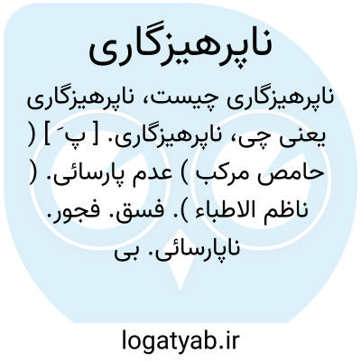 ناپرهیزگاری. [ پ َ ] ( حامص مرکب ) عدم پارسائی. ( ناظم الاطباء ). فسق. فجور. ناپارسائی. بی عفتی. آلوده دامنی. || بی احتیاطی. عدم ملاحظه در حفظ تندرستی. ( ناظم الاطباء ). رجوع به ناپرهیزی شود.