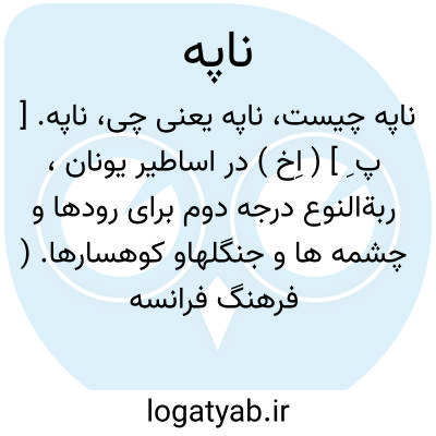 لغت نامه دهخدا ناپه. [ پ ِ ] ( اِخ ) در اساطیر یونان، ربةالنوع درجه دوم برای رودها و چشمه ها و جنگلهاو کوهسارها. ( فرهنگ فرانسه به فارسی سعید نفیسی ).