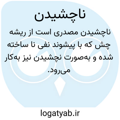 ناچشیدن مصدری است از ریشهٔ چش که با پیشوند نفی نا ساخته شده و به‌صورت نچشیدن نیز به‌کار می‌رود. این واژه در لغت به معنای چشیدن نکردن، مزمزه نکردن یا ناچشیده گذاشتن چیزی است و در متون ادبی و گفتار رسمی، گاه برای بیان بی‌میلی به تجربه‌ی چیزی یا پرهیز از آزمودن مزه‌ای خاص مورد استفاده قرار می‌گیرد. در دستور زبان فارسی، ناچشیدن در زمرهٔ مصدرهای منفی و مقابل چشیدن محسوب می‌شود و ساختار آن بر پایهٔ قاعده‌ی اشتقاق با پیشوند نفی است. این واژه در فرهنگ‌های معتبر لغت، از جمله لغت‌نامهٔ دهخدا و فرهنگ معین، با ارجاع به مدخل چشیدن تعریف شده و کاربرد آن بیشتر در متون کهن و اشعار کلاسیک فارسی به چشم می‌خورد. از نظر نگارشی، تلفظ این کلمه به‌صورت [ چ َ دَ ] (چَـدَ) نشان‌دهندهٔ حرکت کوتاه مصوت‌هاست و رعایت نیم‌فاصله در نوشتار آن همچون ناچشیدن ضروری است. این نمونه، گویای ظرافت‌های خط فارسی و اهمیت نشانه‌گذاری و فاصله‌گذاری صحیح در حفظ یکپارچگی و خوانایی متن است.