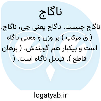 ناگاج. ( ق مرکب ) بر وزن و معنی ناگاه است و بیکبار هم گویندش. ( برهان قاطع ). تبدیل ناگاه است. ( انجمن آرا ). مبدل ناگاه است. ( فرهنگ نظام ). ناگاه. ( غیاث اللغات ). || بیوقت. نابگاه. نابهنگام.ناگاه. رجوع به همین کلمه شود.