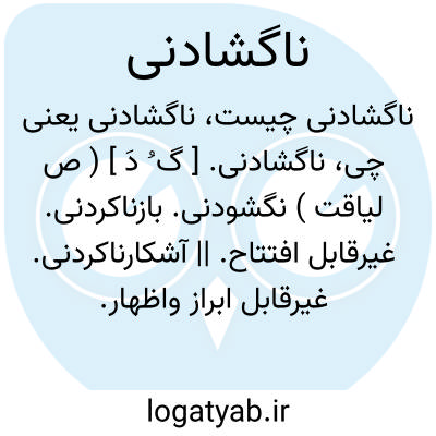 ناگشادنی. [ گ ُ دَ ] ( ص لیاقت ) نگشودنی. بازناکردنی. غیرقابل افتتاح. || آشکارناکردنی. غیرقابل ابراز واظهار. مقابل گشادنی. رجوع به گشادنی شود.