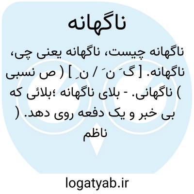 لغت نامه دهخدا ناگهانه. [ گ َ ن َ / ن ِ ] ( ص نسبی ) ناگهانی.- بلای ناگهانه؛بلائی که بی خبر و یک دفعه روی دهد. ( ناظم الاطباء ).