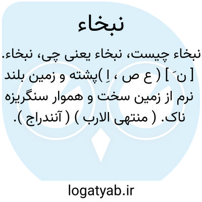 نبخاء. [ ن َ ] ( ع ص، اِ )پشته و زمین بلند نرم از زمین سخت و هموار سنگریزه ناک. ( منتهی الارب ) ( آنندراج ). مرتفعة. ( المنجد ). پشته، و گفته اند زمین مرتفع. ( از اقرب الموارد ) ( از معجم متن اللغة ). || سست از زمینی سنگ ناک. ( از اقرب الموارد ). رخوة من الارض. ( المنجد ). ج، نباخی.