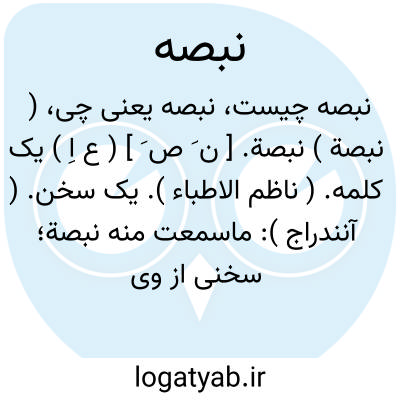 ( نبصة ) نبصة. [ ن َ ص َ ] ( ع اِ ) یک کلمه. ( ناظم الاطباء ). یک سخن. ( آنندراج ): ماسمعت منه نبصة؛ سخنی از وی نشنیدم. ( منتهی الارب ). نبسة. رجوع به نبسة شود.