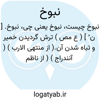نبوخ. [ ن ُ ] ( ع مص ) ترش گردیدن خمیر و تباه شدن آن.( از منتهی الارب ) ( آنندراج ) ( از ناظم الاطباء ). ورآمدن و تخمیر شدن و ترش گردیدن و فاسد گشتن خمیر. ( از معجم متن اللغة ). نفخ کردن خمیر. ( از اقرب الموارد ). ترش و فاسد شدن خمیر. ( از اقرب الموارد از قاموس ).