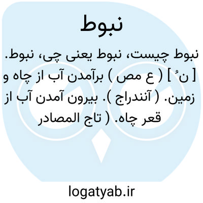 نبوط. [ ن ُ ] ( ع مص ) برآمدن آب از چاه و زمین. ( آنندراج ). بیرون آمدن آب از قعر چاه. ( تاج المصادر بیهقی ). نبع. نبعان. || برآوردن آب چاه را. ( آنندراج ) نبط. رجوع به نبط شود.