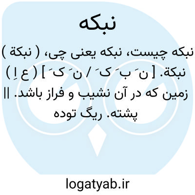 ( نبکة ) نبکة. [ ن َ ب َ ک َ / ن َ ک َ ] ( ع اِ ) زمین که در آن نشیب و فراز باشد. || پشته. ریگ توده خرد. || پشته تیزسر، و گاهی سرخ هم باشد. ( منتهی الارب ) ( آنندراج ). ج، نبک، نبوک، نباک.