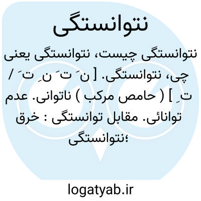 نتوانستگی. [ ن َ ت َ ن ِ ت َ / ت ِ ] ( حامص مرکب ) ناتوانی. عدم توانائی. مقابل توانستگی: خرق؛نتوانستگی مرد عمل و حیله کار را. ( منتهی الارب ).
