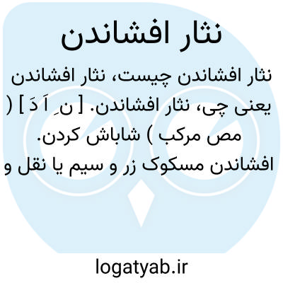 نثار افشاندن. [ ن ِ اَ دَ ] ( مص مرکب ) شاباش کردن. افشاندن مسکوک زر و سیم یا نقل و نبات و امثال آن بر سر پادشاه یا تازه عروس یا تازه داماد:
