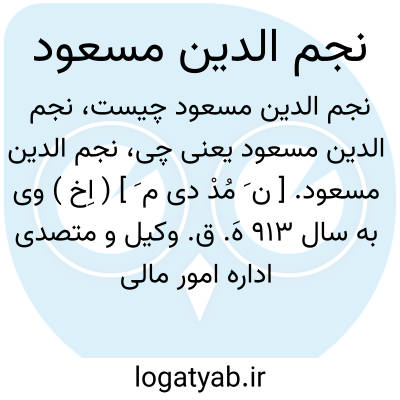 نجم الدین مسعود. [ ن َ مُدْ دی م َ ] ( اِخ ) وی به سال 913 هَ. ق. وکیل و متصدی اداره امور مالی و اداری دربار شاه اسماعیل صفوی شد. رجوع به حبیب السیر ج 3 جزء 4 ص 149 و سازمان اداری حکومت صفوی ص 81 شود.