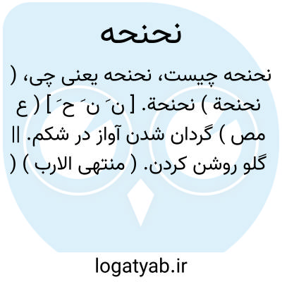 ( نحنحة ) نحنحة. [ ن َ ن َ ح َ ] ( ع مص ) گردان شدن آواز در شکم. || گلو روشن کردن. ( منتهی الارب ) ( آنندراج ) ( ناظم الاطباء ). بخوفیدن. ( زوزنی ). خفیدن. تنحنح کردن. ( یادداشت مؤلف ). || به زشتی و درشتی برگردانیدن شتر را. ( آنندراج ) ( منتهی الارب ). به زشتی و درشتی دور کردن سائل را. ( از ناظم الاطباء ).